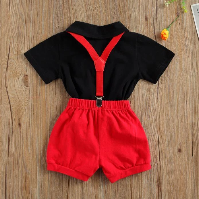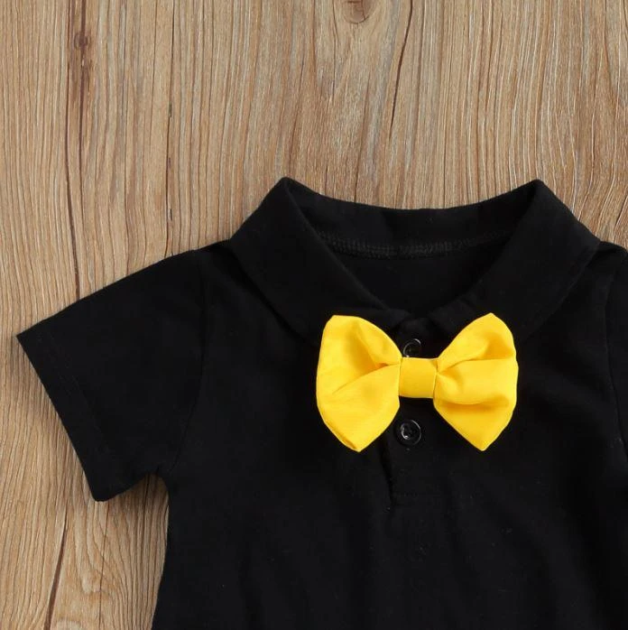 Style: Bow tie onesie with suspender shorts (2-piece gentleman outfit)