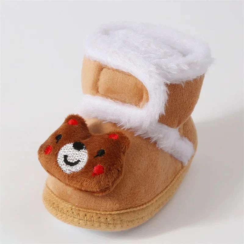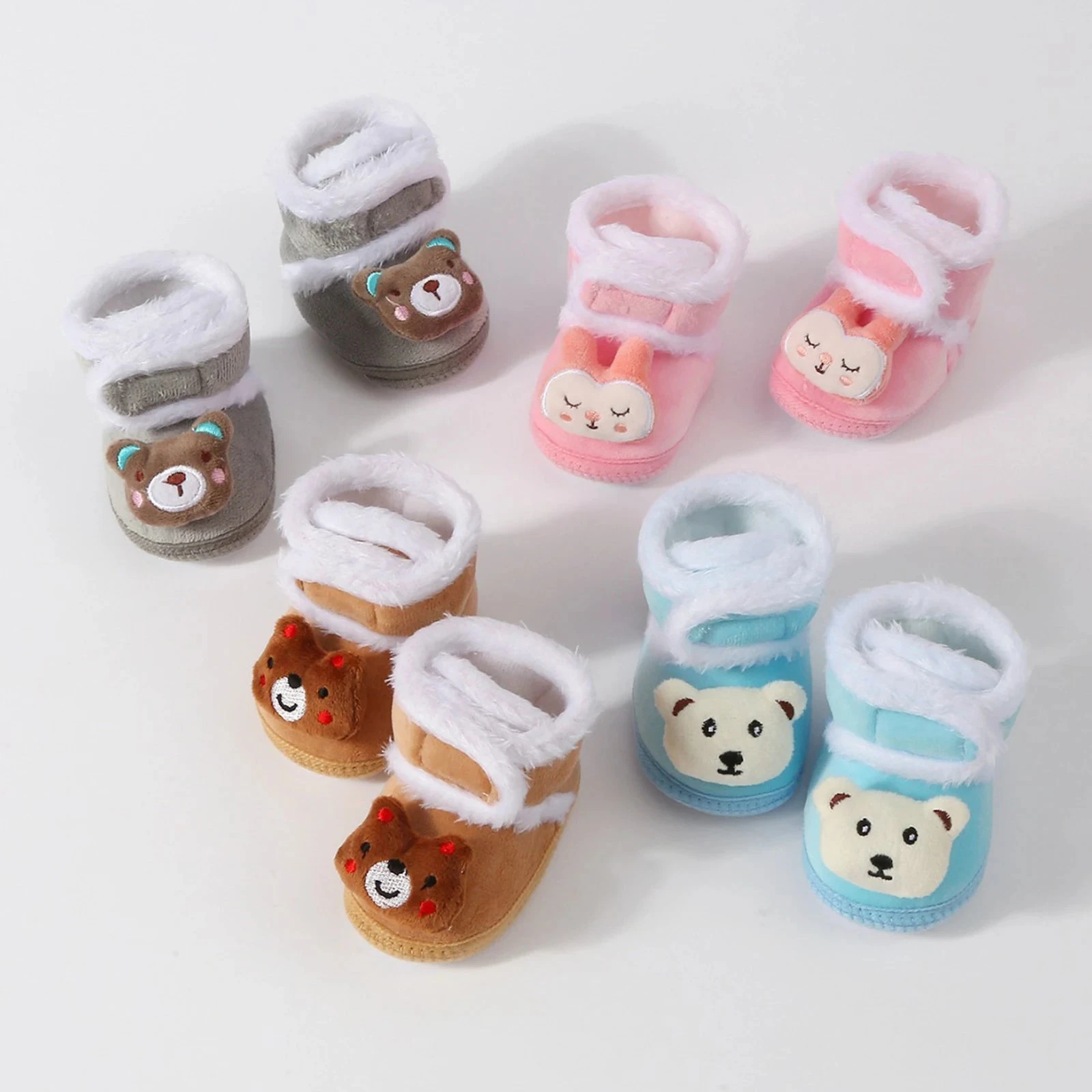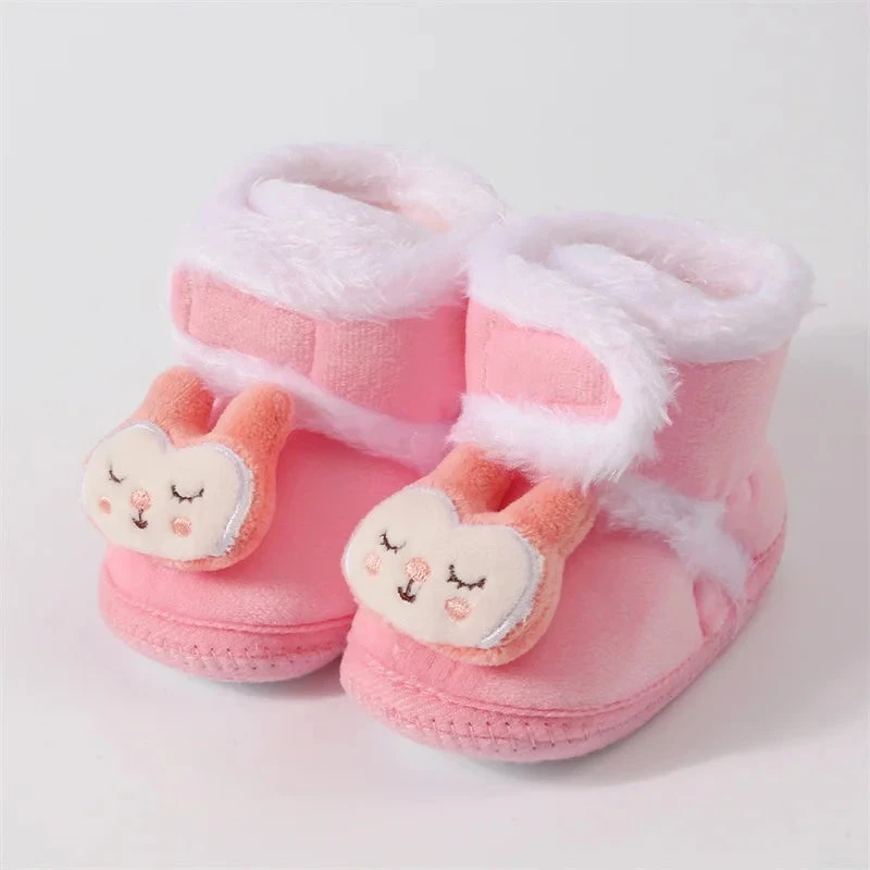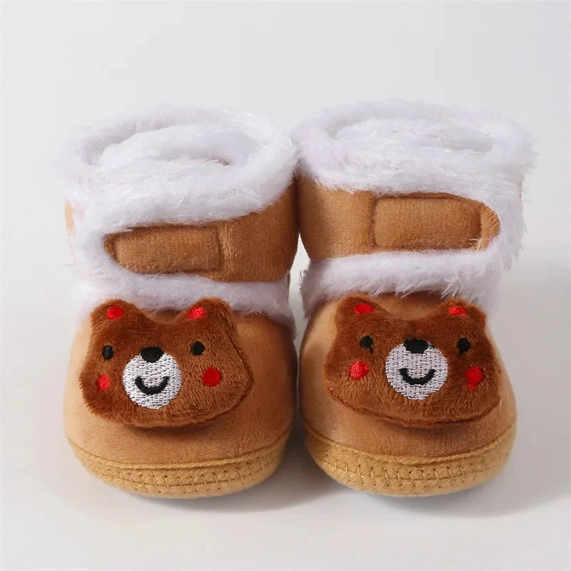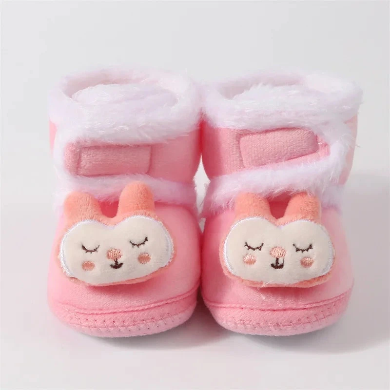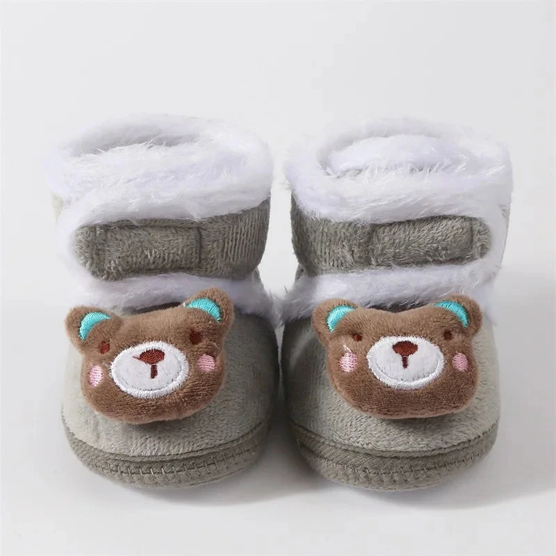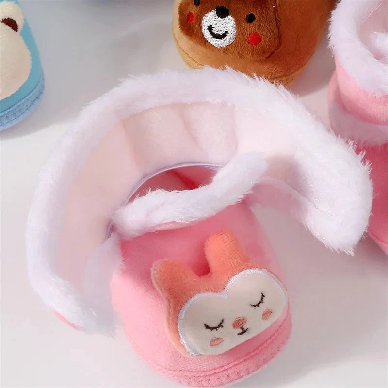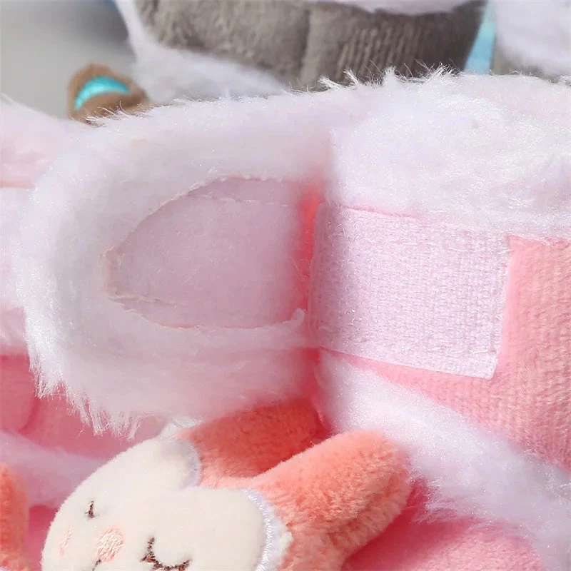 These are cute animal soft-sole booties for baby and toddler boys and girls who need cozy, comfortable footwear for early steps and indoor play. Made from soft coral velvet with adorable animal patterns, they feature easy Velcro straps for a secure fit and soft soles that allow natural foot movement. Available in three sizes from 0-6 months through 12-18 months with detailed insole measurements, they solve the challenge of finding booties that are both warm enough for little feet and flexible enough for natural development.