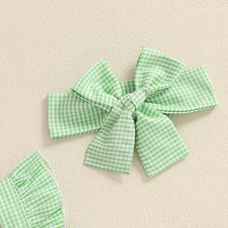 Style: Sleeveless ruffle plaid avocado print dress with matching bow (2-piece set)