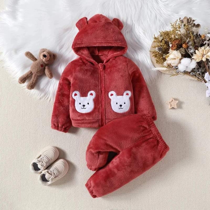 Complete 2-piece set – Includes matching bear hoodie and pants for effortless coordination.