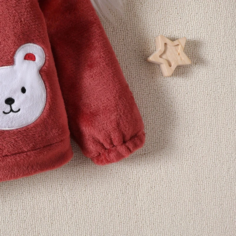 Adorable bear design – Charming bear details on the hoodie add playful winter whimsy.