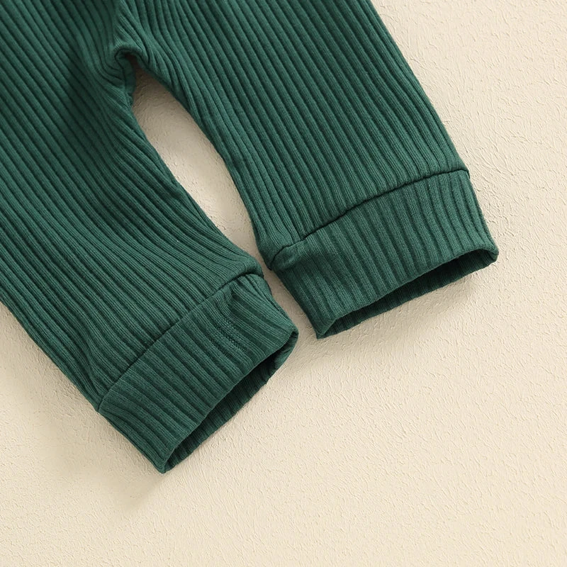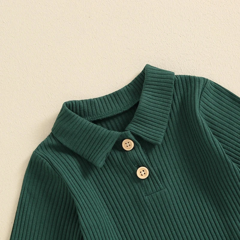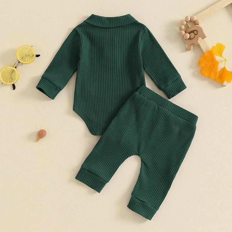 Style: Solid ribbed long-sleeve collared button onesie with matching pants (2-piece outfit set)