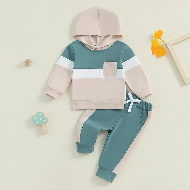 Style: Long-sleeve stripe color patch hoodie with matching pants (2-piece outfit set)