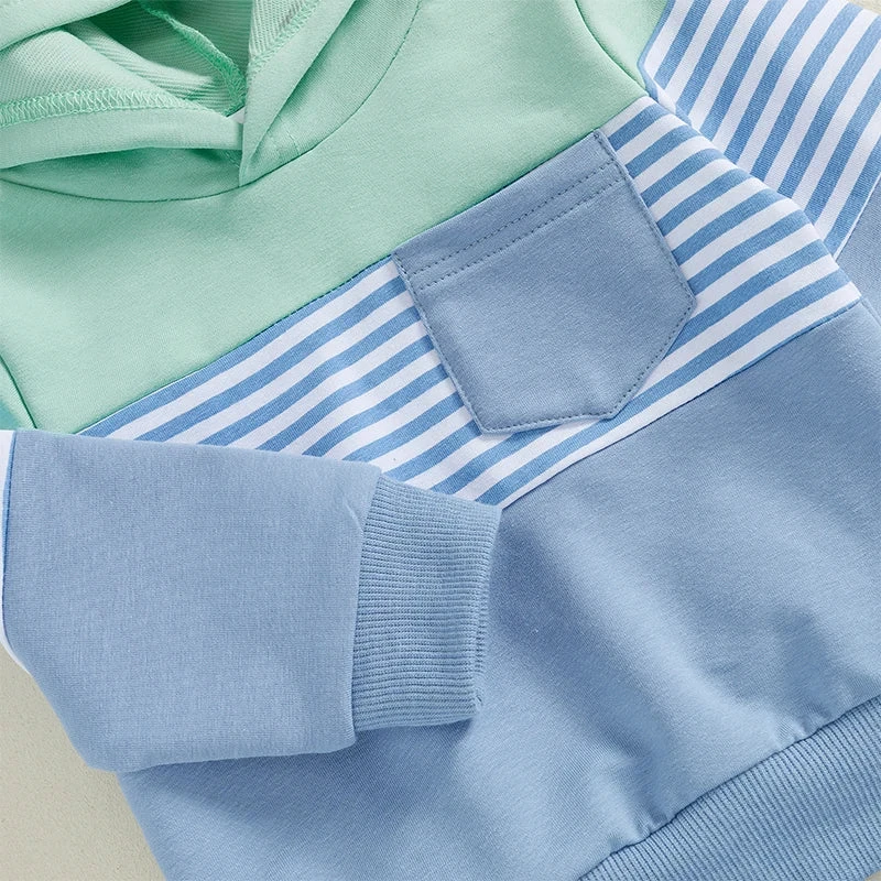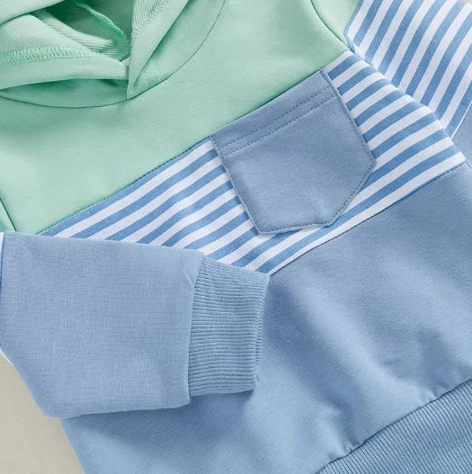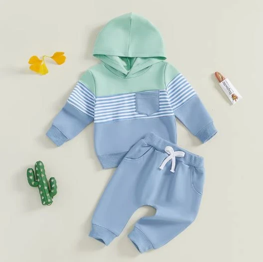 This is a 2-piece outfit set for baby and toddler boys featuring a cozy long-sleeve striped pocket hoodie with matching pants. Made from a soft cotton blend, it’s perfect for keeping little ones warm and stylish during cooler weather. The classic striped pattern adds timeless appeal, while the convenient pocket on the hoodie is perfect for storing little treasures. It solves the challenge of finding a coordinated outfit that’s both comfortable enough for everyday play and cute enough for family outings.
